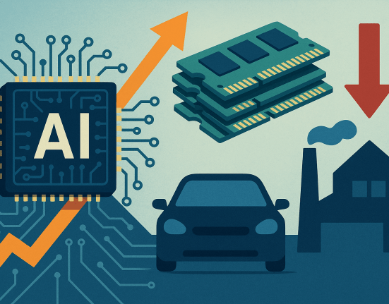 A memory chip bottleneck is building across global supply chains as surging demand from the artificial intelligence sector redirects production away from essential